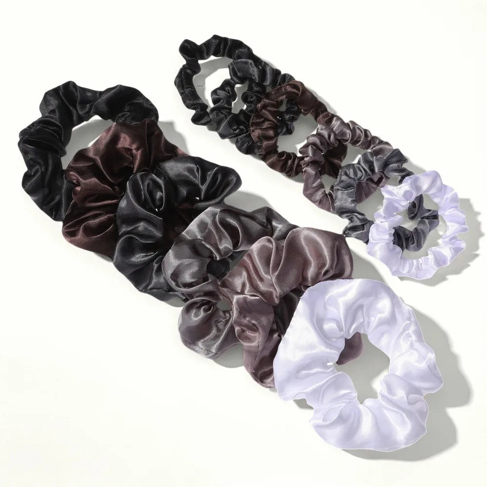 Made from soft satin material, these scrunchies are designed to be gentle on your hair, preventing breakage, pulling, or creasing. The set includes a mix of small and large scrunchies, making it versatile enough for thin, thick, curly, or straight hair. Each scrunchy wraps securely without slipping or damaging your strands — ideal for day or night wear.
