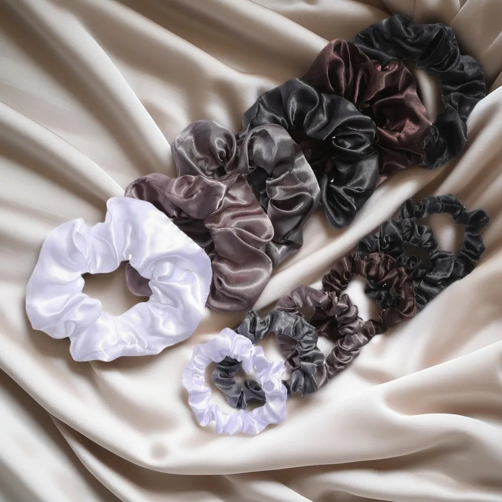 Mixed Sizes: A combination of small and large scrunchies to suit every style and volume.