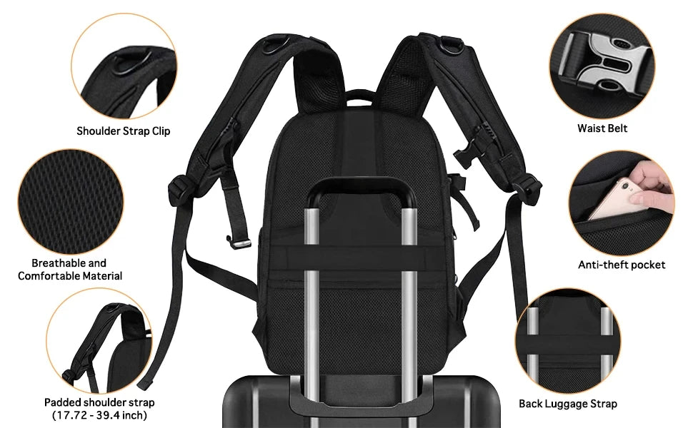 Meet the ProShell™ Creator Camera Backpack — your all-in-one content bag built to carry the vibe and the gear. Designed with a sleek, shock-resistant hardshell and weatherproof finish, this backpack protects your DSLR, lenses, tripod, and laptop with serious style.