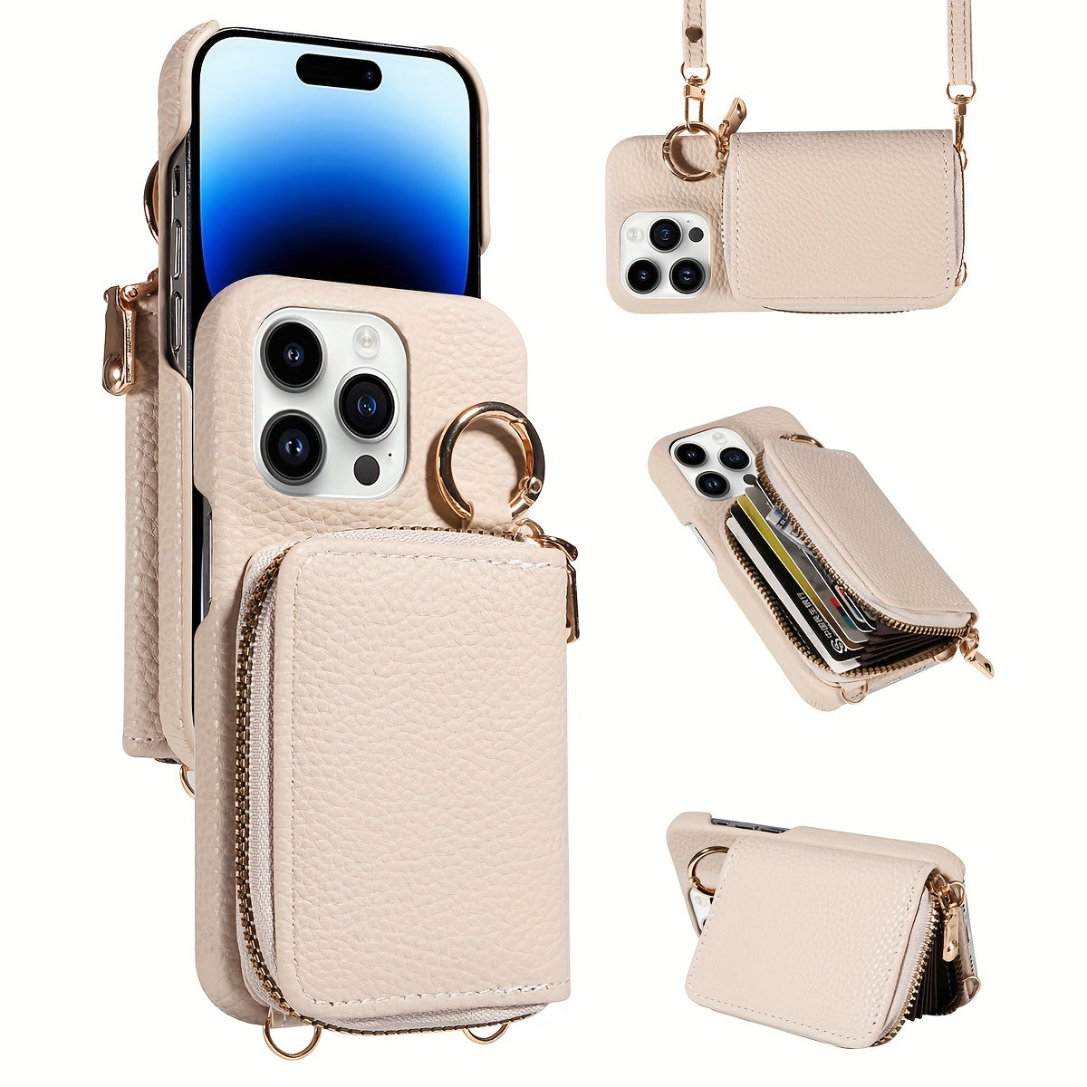 LuxeZip™ Leather Phone Case – Zipper Wallet, Card Holder & Lanyard Strap for iPhone (Anti-Drop, On-the-Go Chic)