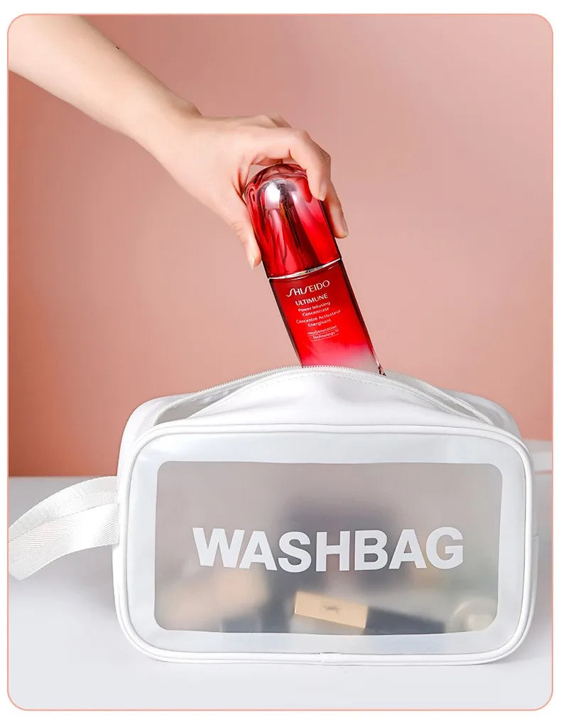 Whether it’s a quick weekend trip or a full glam getaway, this transparent travel case keeps your routine effortless and chic.