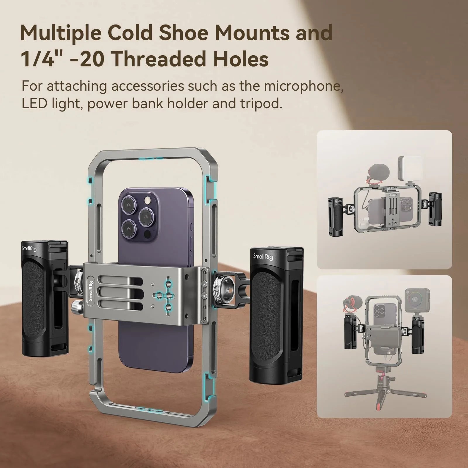 Includes a universal phone cage, 2 ergonomic side handles, cable ties, and an Allen wrench—everything you need to build a portable studio in your hands.