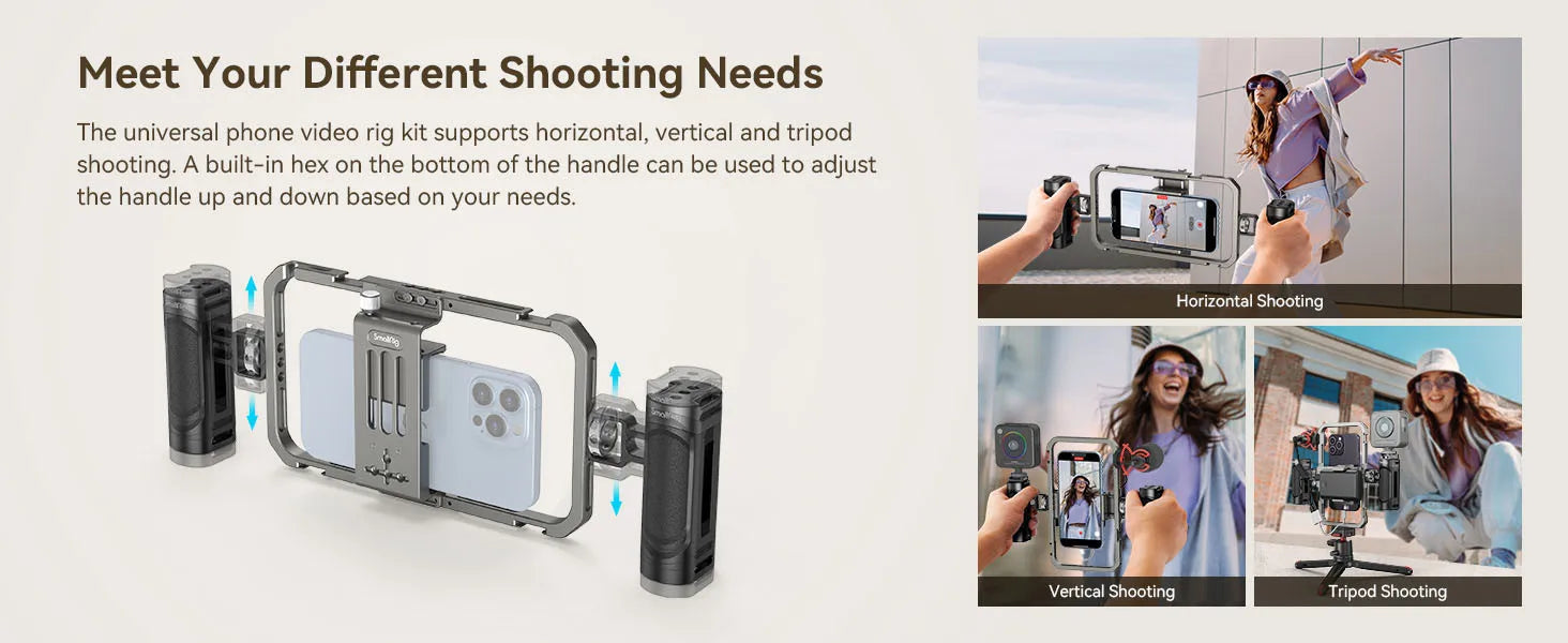 Lightweight yet rugged, the kit includes a universal phone cage, dual side handles, and multiple mounting points for microphones, lights, monitors, and more—making it easy to create wherever inspiration strikes.