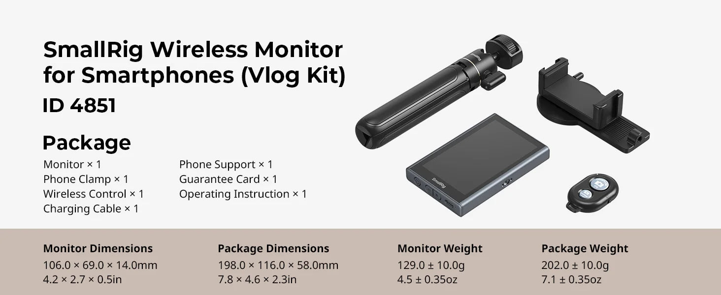 Product Name in Package: SmallRig Wireless Video Monitor for Phone (Vlog Kit) 4851