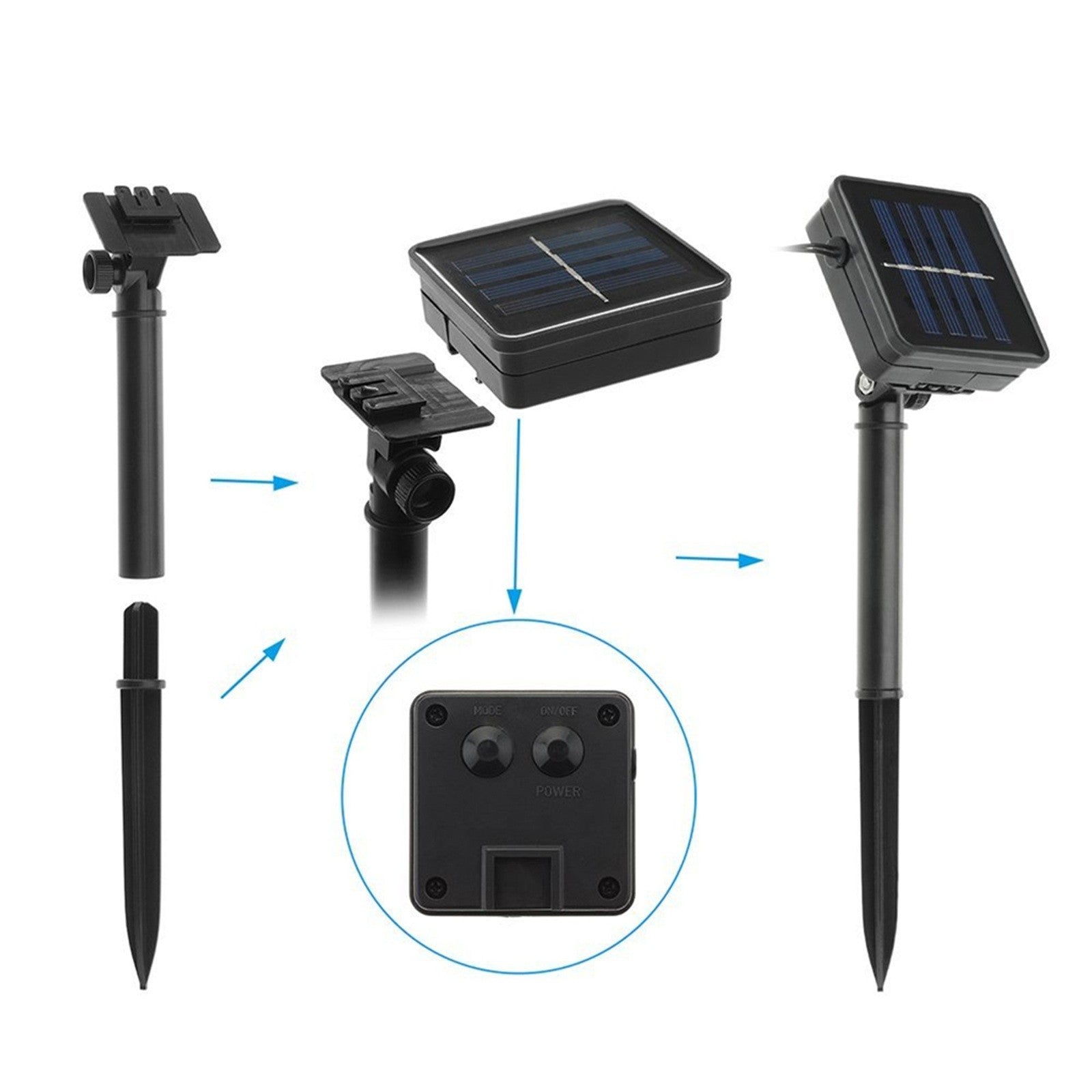 Solar powered panel is With ON/OFF, MODE switches